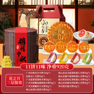 中秋提篮月饼礼盒11饼11味(三层-花之月)