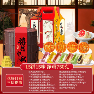 中秋提篮月饼礼盒15饼15味(三层-花好月圆