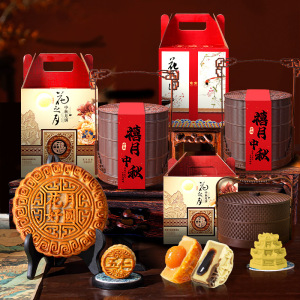 月饼礼盒装提篮广式苏式五仁冰皮流心奶黄蛋黄莲蓉中秋节批发团购