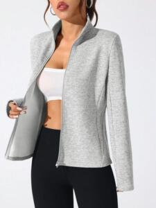 亚马逊外贸欧美跨境新款瑜伽运动外套女拉链立领长袖百搭跑步上衣