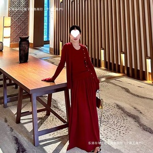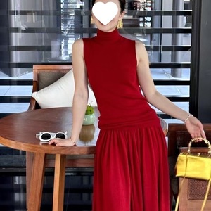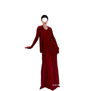 圣诞安可拉红气质显瘦背心套装新款羊毛针织上衣半身裙三件套开衫