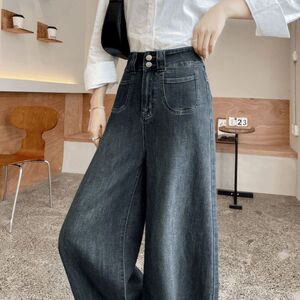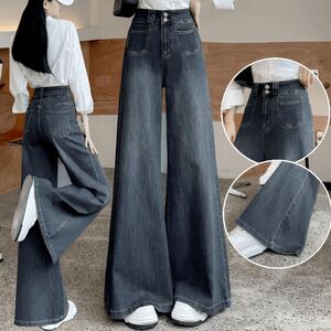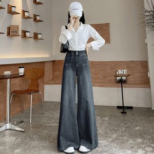 2025复古超阔喇叭牛仔裤春秋季新款高腰宽松显瘦梨形大摆拖地裤子