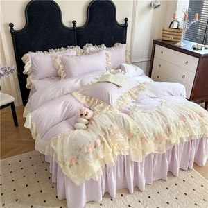 法式韩版水洗公主床裙四件套床上花边床单蕾丝被套三件套少女四季