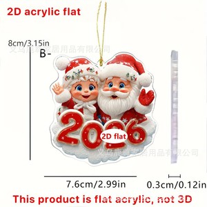 跨境圣诞节圣诞老人2026年2D平面亚克力车载背包挂件挂饰装饰新款