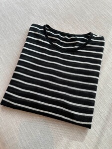 081602 夏季新款女士日常休闲百搭圆领显瘦针织条纹上衣长袖T恤