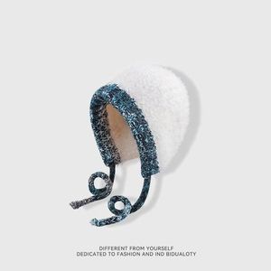 冬季保暖护耳彩绳毛绒帽女百搭防风针织毛线帽加绒加厚骑车套头帽
