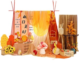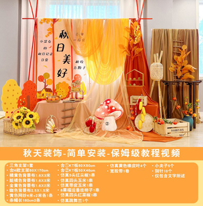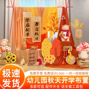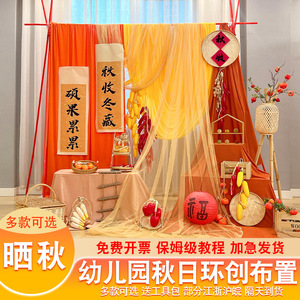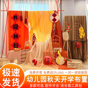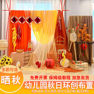 幼儿园秋天环创场景布置晒秋开学主题墙自然植物角教室走廊挂布猫