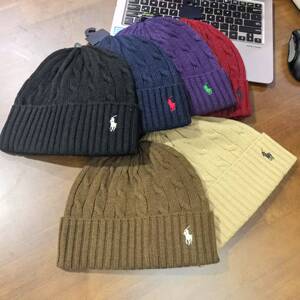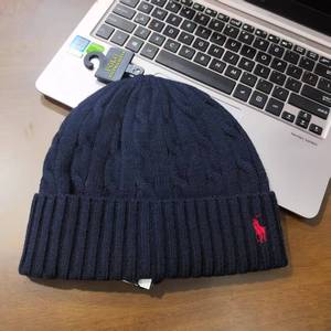 RL小马标情侣刺绣秋冬POLO针织帽子麻花保暖防寒套头冷帽手工绣