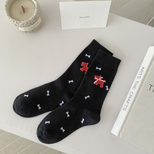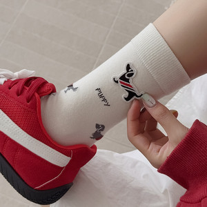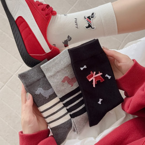 欧货潮牌袜TB小狗袜子少女个性时尚轻奢中筒袜韩版学院风堆堆棉袜