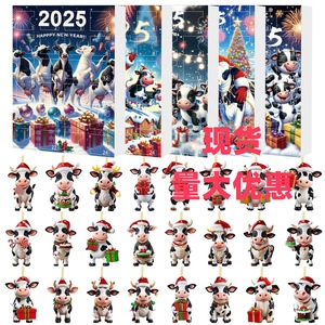 跨境2025圣诞降临倒计时盲盒 圣诞老人奶牛农场挂件圣诞树装饰品