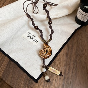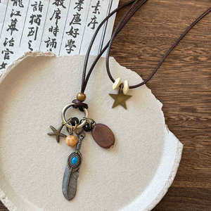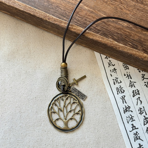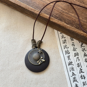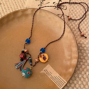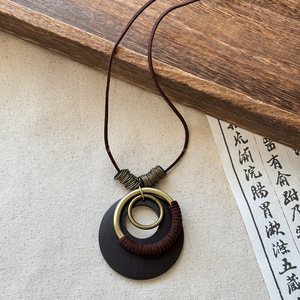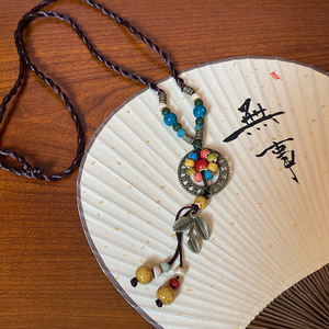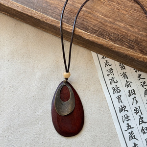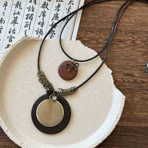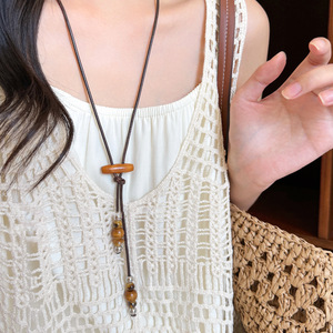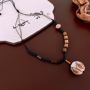复古民族风木珠吊坠项链新中式禅意时尚毛衣链设计感饰品女高级感
