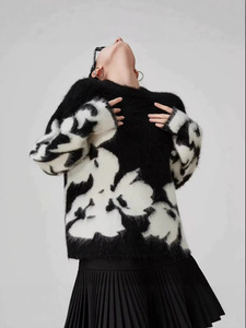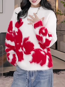 高版本秋冬新款DENIM棉花印花高街休闲宽松美式圆领毛衣跨境现货