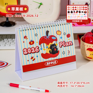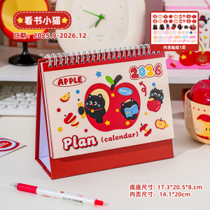 2026苹果猫台历 创意学生自律计划日历ins风桌面记事备忘实用摆件