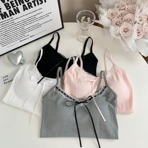 蕾丝吊带背心女蝴蝶结纯欲甜辣妹新款白色内搭打底带胸垫外穿夏季