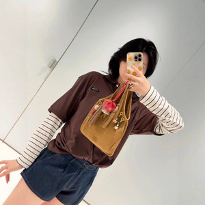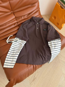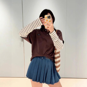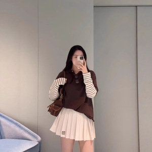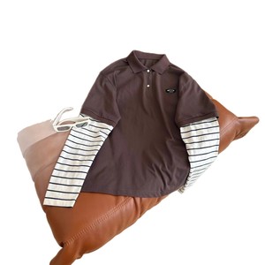 MM系早秋美拉德徽标装饰假两件长袖T恤 Polo翻领宽松百搭上衣女