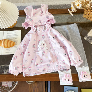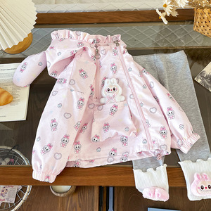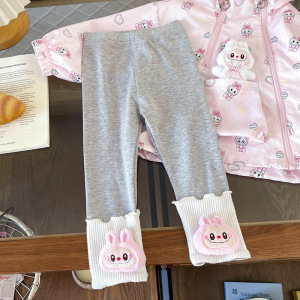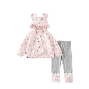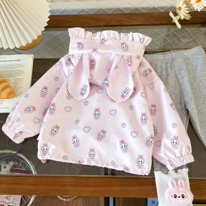 QW252331儿童童套装2025秋季儿童连帽外套女童卡通打底裤两件套