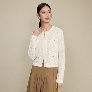 法式气质小香风重工镂空山茶花型羊毛针织开衫设计感纯色短款外套