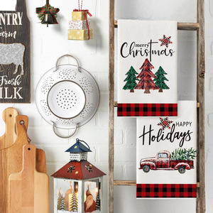 跨境热卖圣诞树印花毛巾亚马逊厨房毛巾节日印花