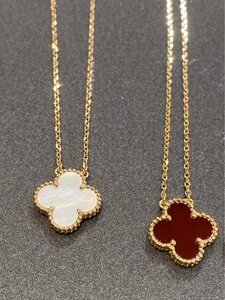 梵家v金幸运四叶草项链925银镀18k白贝母项饰女轻奢高级感锁骨链