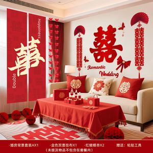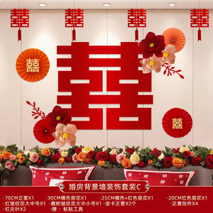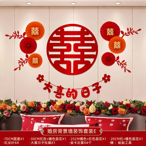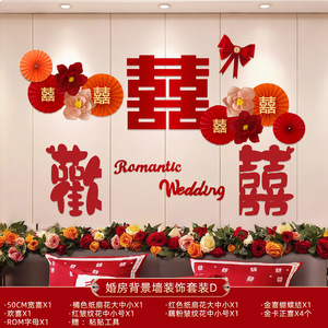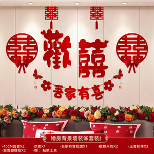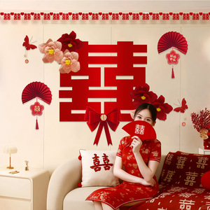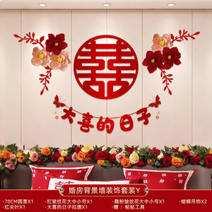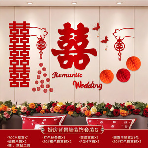 喜字拉花套装结婚布置用喜字结婚男方女方卧室房间床头背景墙喜字