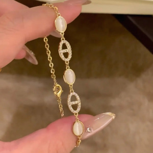 小红书爆款猫眼石满钻猪鼻子手链2025新款轻奢气质爆闪手环