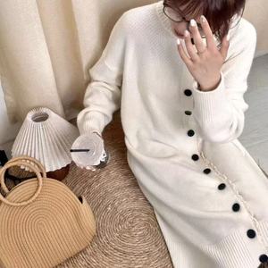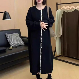 日系森女文艺复古慵懒过膝长款连衣裙针织开衫外套大码宽松毛衣女