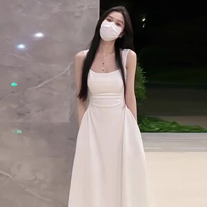 法式白色吊带长裙2025夏季新款收腰A字长裙季时尚裙子女夏连衣裙