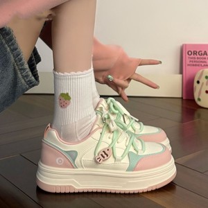 爆款樱花粉板鞋女2025秋季新款爆改小猫吃鱼高颜值超软厚底小白鞋