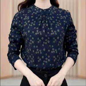 一件代发2025秋季新款时尚洋气修身减龄复古气质碎花长袖打底衫潮