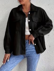 跨境欧美女装2025亚马逊独立站灯芯绒女式衬衫纯色文理长袖外套女