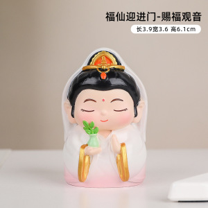 福仙迎进门神仙摆件财神供奉办公室电脑桌面玄关装饰小摆件装饰