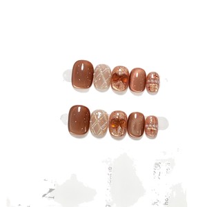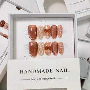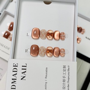 菱格秋冬棕色猫眼美甲小香风显白百搭手工穿戴甲假指甲