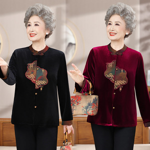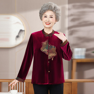 新款中老年女长袖秋冬衣服2025奶奶洋气秋装衬衫外套70岁妈妈上衣