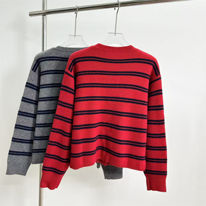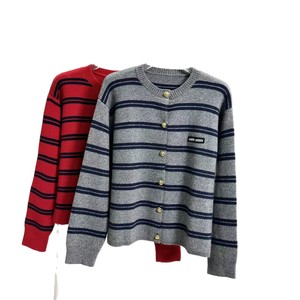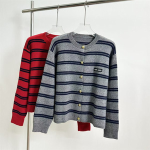 南油女装25早秋新款字母徽标撞色复古条纹长袖针织开衫外套女