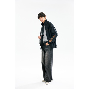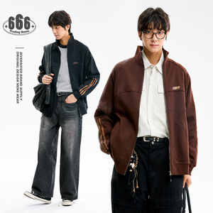 BRUSHKA简约学院风休闲宽松立领开衫卫衣男夹克秋冬加绒外套3089