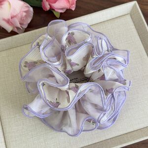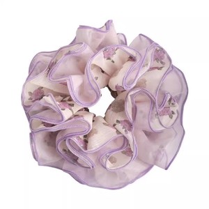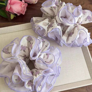 紫色碎花甜美网纱发圈轻薄仙气俏皮碎花肠圈马尾发绳头花发饰女发
