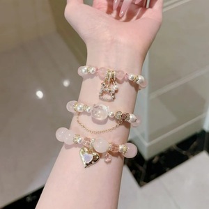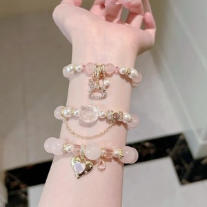 天然粉水晶手串熊的珍宝珠同款抖音直播爆款甜美可爱轻奢小众手链