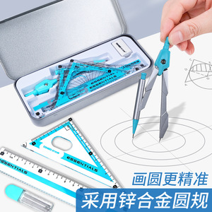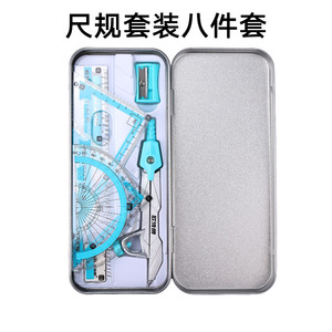 新款铁盒圆规套装学生绘图绘画尺子7件套8件套装考试学习文具用品