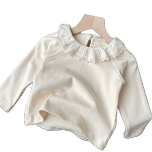 韩系秋女童春秋新款小碎花荷叶领长袖打底衫翻领长袖小童T恤上衣