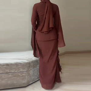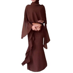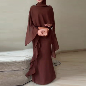 2025年新款欧美亚马逊跨境外贸女装荷叶边棕色优雅纯色时尚连衣裙