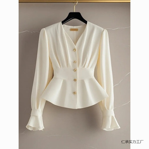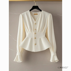 新款独特别致轻奢时尚白色衬衫女欧货高级感超好看小众小衫仁承
