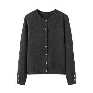女装2025冬圆领针织开衫长袖外套简约格雷系Q404Z020MM50