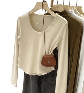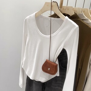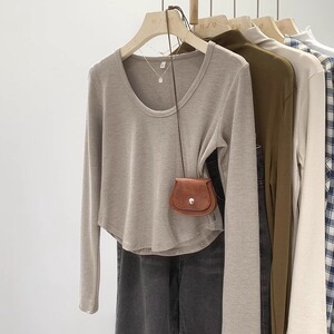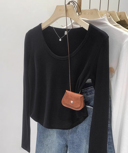 4306#1*1螺纹210G长袖t恤女2025秋季新款薄款圆领纯色打底衫上衣