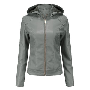 新款跨境欧美大码加绒女皮衣女连帽秋冬短外套保暖休闲女夹克