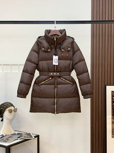 celi家新款冬季收腰修身羽绒服女连帽咖色腰带外套气质通勤服装