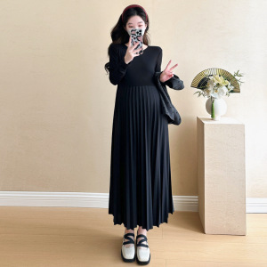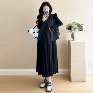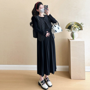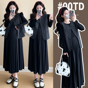 现货孕妇裙秋装新款百褶连衣裙小香风马甲两件套孕妇套装