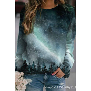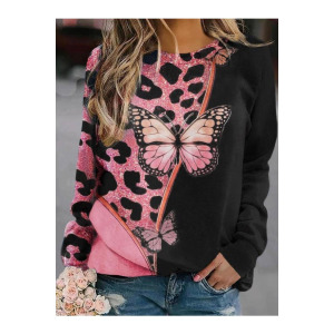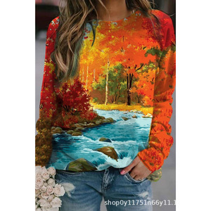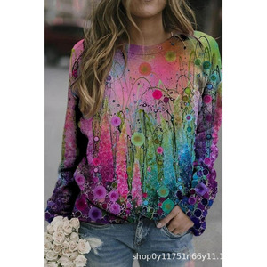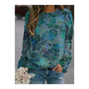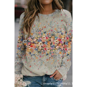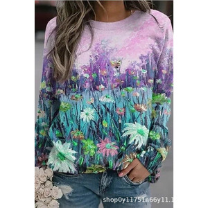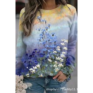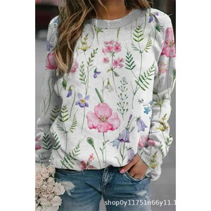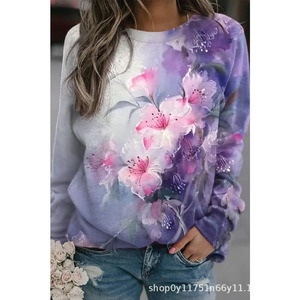 2025年秋季新款圆领女士卫衣花卉印花3D数码舒适通勤气质女装