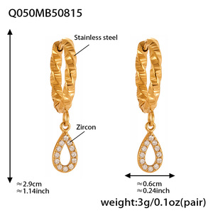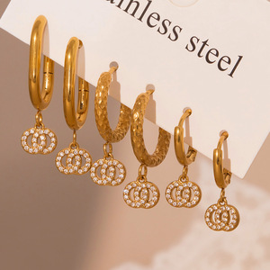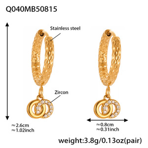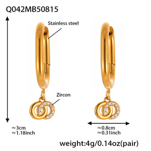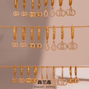 鑫艺鑫新中式双环耳坠镶嵌锆石耳环不锈钢镀18k真金简约百搭耳饰