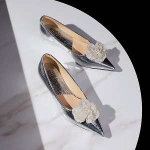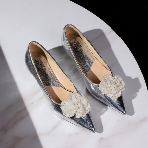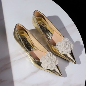6200-H92韩版浅口珍珠花朵蝴蝶结婚鞋坡跟女鞋尖头显瘦低跟单鞋女