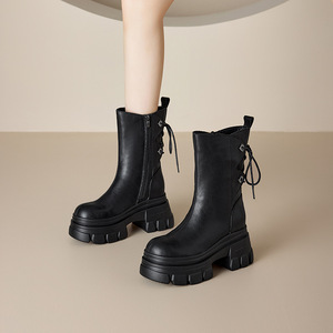 内增高马丁靴女英伦风2025新款棕色骑士短靴百搭中筒秋季女式靴子